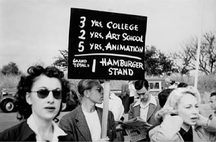 Le matin du 29 mai 1941, devant les studios de Disney, les dessinateurs, animateurs, assistants et techniciens quittent leur poste. Ils s’installent devant les grilles et mettent en place des piquets de grève.