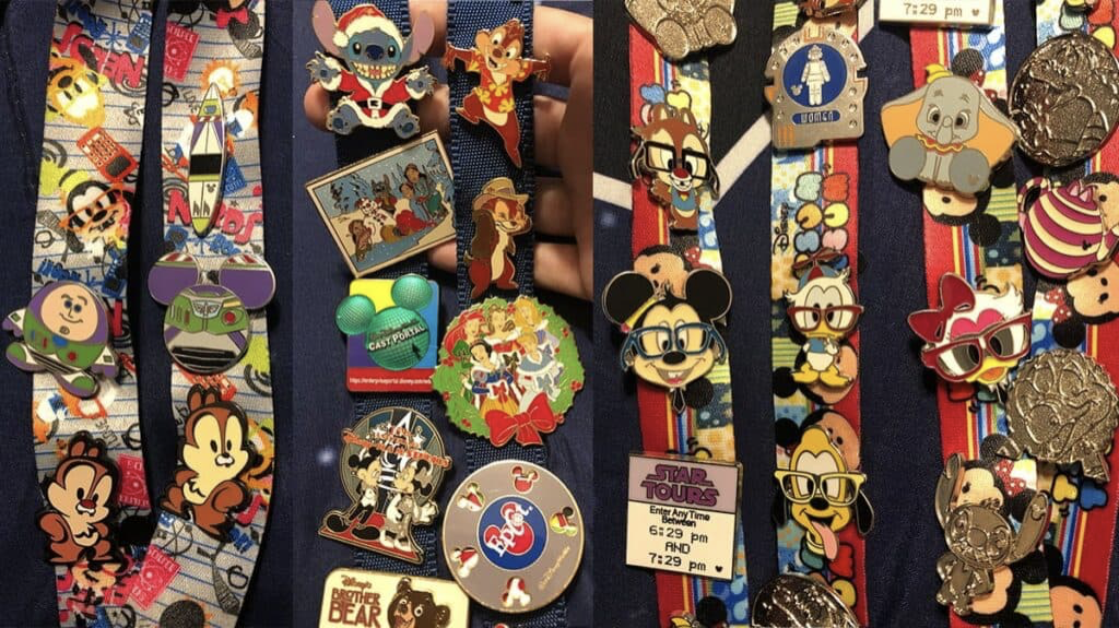 Il s’agit donc d’une tradition importée des États-Unis, mais adaptée au parc européen. Elle permet aux visiteurs non seulement de collectionner ces objets, mais aussi de les échanger et de prolonger la magie bien au-delà des attractions. Le principe est simple et presque ludique : il suffit d’acheter un pin officiel Disney pour pouvoir ensuite l’échanger gratuitement avec un Cast Member portant une lanière garnie d’autres pins.