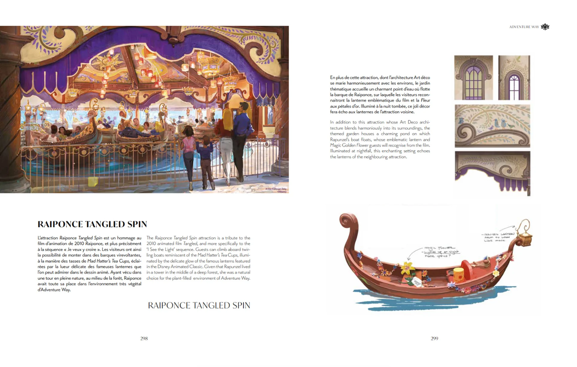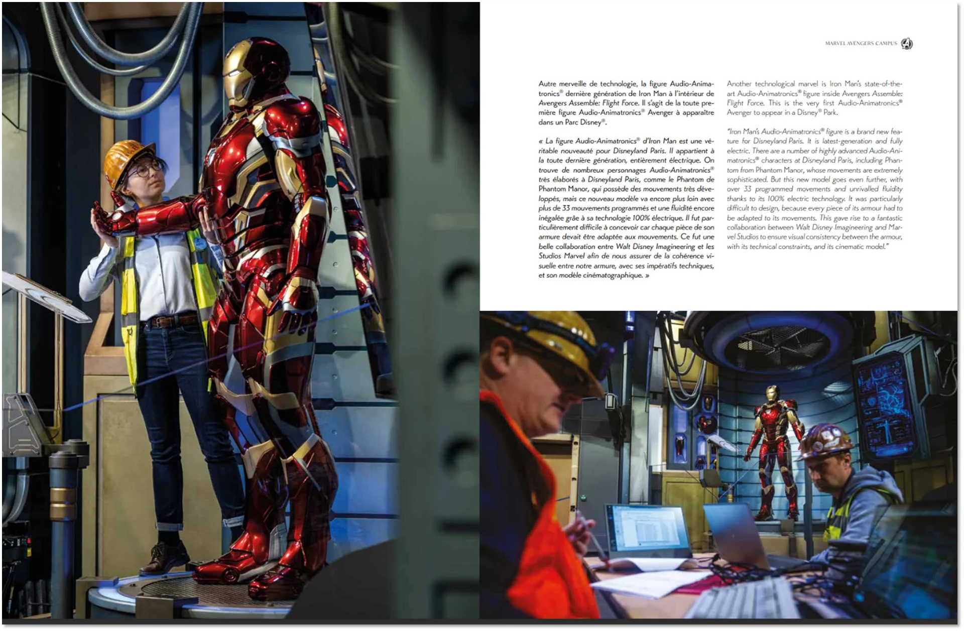 Ces témoignages montrent à quel point la réflexion a été exhaustive et minutieuse, mêlant ingénierie, créativité artistique et expertise technique. Chaque chapitre de l’ouvrage est consacré à un pan particulier du parc, décrivant ainsi la spécificité d’Adventure Way, World of Frozen, World Premiere, Avengers Campus ou encore Worlds of Pixar. Les concepteurs y racontent le défi que représentait l’intégration harmonieuse des différentes zones tout en respectant une cohérence narrative globale.