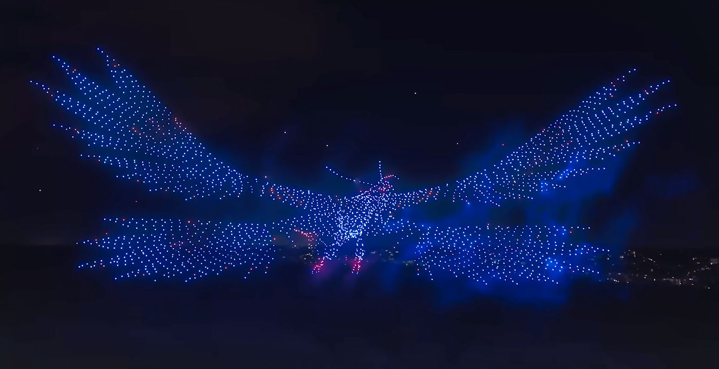 • Cette performance aérienne, créée par l’entreprise française Dronisos, utilise 3 700 drones pour recréer l’univers de Pandora.