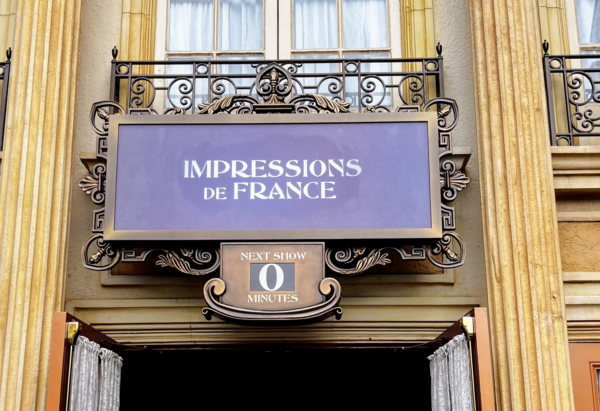 EPCOT a fermé indéfiniment Impressions de France le 22 février 2026 pour une rénovation de routine, laissant le pavillon français sans ses principales attractions cinématographiques. Cette fermeture sans date de réouverture affecte également Beauty and the Beast Sing-Along qui partage le même théâtre au Palais du Cinéma.
