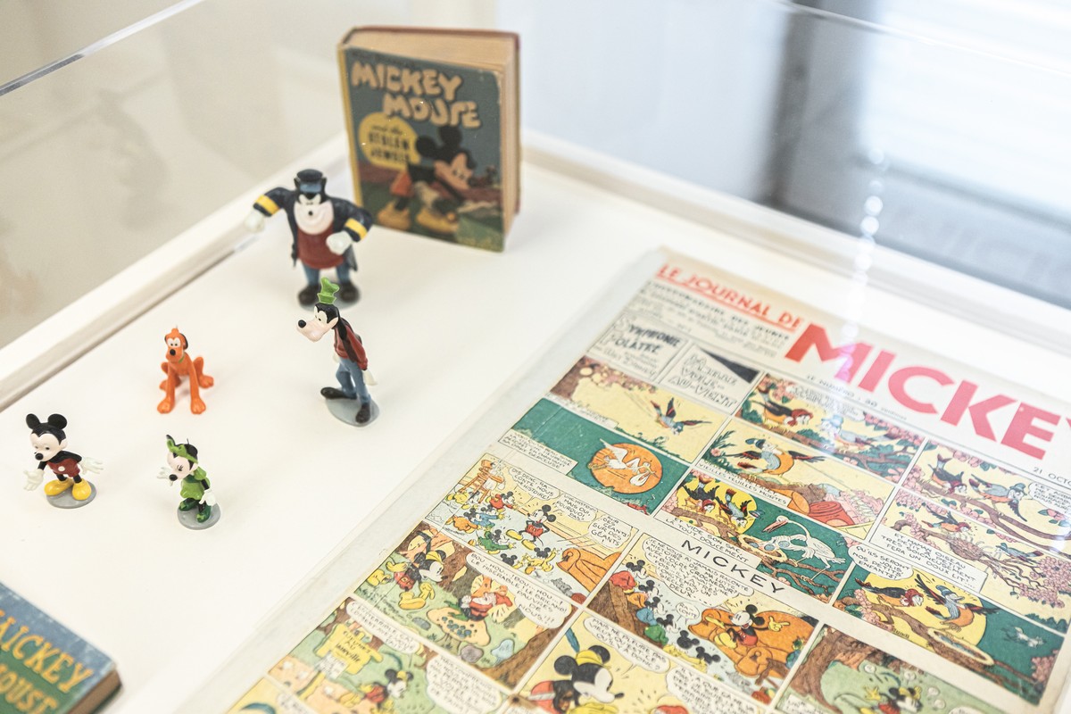 Au cœur de l’exposition se trouvent des pièces exceptionnelles qui racontent l’histoire de Mickey à travers les décennies. Ces objets rares, issus de collections privées et de musées, offrent un regard inédit sur la réception et l’évolution du personnage. Parmi eux, des jouets anciens, des dessins originaux, des documents publicitaires ou encore des articles de presse, chacun témoignant d’une époque et d’un contexte particulier.