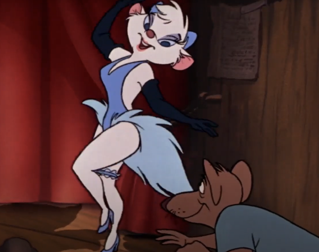 Cette apparition est volontairement surprenante : la voix et le style de Miss Kitty paraissent presque trop modernes pour l’époque victorienne évoquée par le reste du film. La scène fonctionne comme une respiration — un intermède sensoriel qui attire et capte l’attention autant des personnages à l’écran que du public. Le méchant charismatique du film, Ratigan, reste la figure la plus mémorable, mais la séquence du cabaret s’impose comme un moment à part, très cité par les amateurs du film.