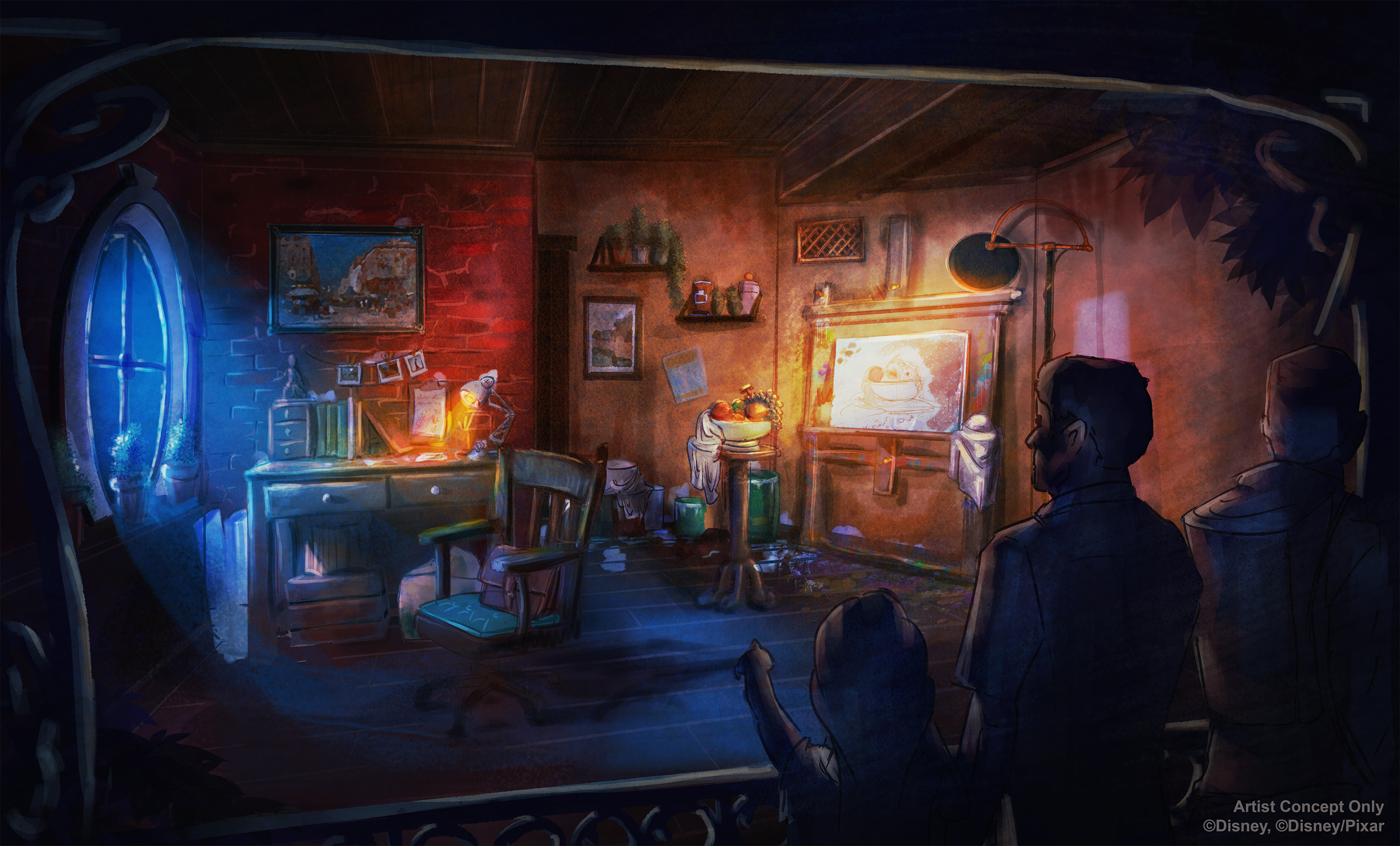Une des innovations les plus marquantes de cette rénovation est sans conteste l’intégration d’une nouvelle scène immersive directement dans la file d’attente de l’attraction Ratatouille. Cette scène a été conçue comme un véritable atelier d’artiste parisien, représentant avec minutie des toiles, des taches de peinture éparses, des accessoires variés, ainsi qu’une corbeille de fruits appétissants. Cette mise en scène vient enrichir l’univers Pixar de Ratatouille dès l’entrée dans l’attraction, créant ainsi une continuité thématique harmonieuse avec le film et plongeant immédiatement les visiteurs dans l’ambiance de la capitale française et de la cuisine gastronomique. Cette immersion progressive vise à éviter l’attente perçue comme longue en captivant l’attention par des détails soignés et une narration visuelle subtile. Le contraste entre le réalisme des éléments et l’univers fantaisiste de Pixar permet une expérience unique, renforcée par la fidélité des décors et la qualité des matériaux utilisés. Par ailleurs, ces nouveautés offrent une meilleure lisibilité thématique et une préparation émotionnelle au parcours principal, ce qui est fondamental dans le cadre d’une attraction fondée sur la similitude entre la profondeur du récit et la magie des effets visuels. En somme, ce nouvel aménagement dans la file d’attente est un bel exemple des efforts déployés pour allier technique, narration et expérience sensorielle dans un espace traditionnellement négligé par certaines attractions.